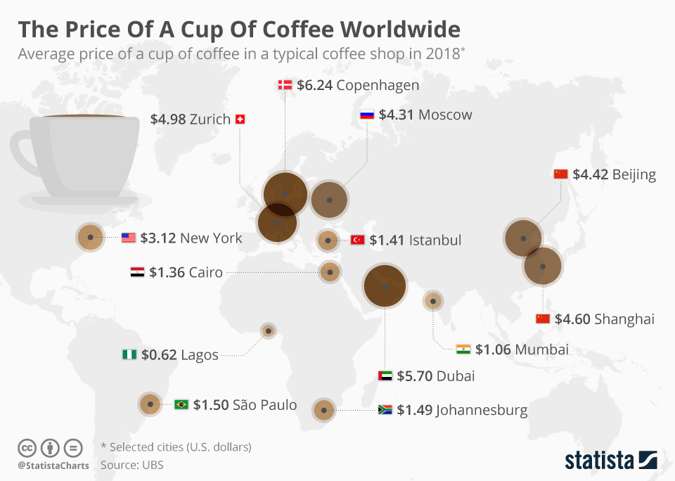 North America, with the second-largest number of coffee consumers, also pays the second-highest price per cup of coffee for the majority of the average coffee shop purchase. Coffee prices will rise to $4.57 in 2021, according to an analysis of coffee prices. Coffee prices have risen as a result of increased production and the depreciation of the US dollar. Inflation will continue to have an impact on coffee prices in the future, just as it has in the past.